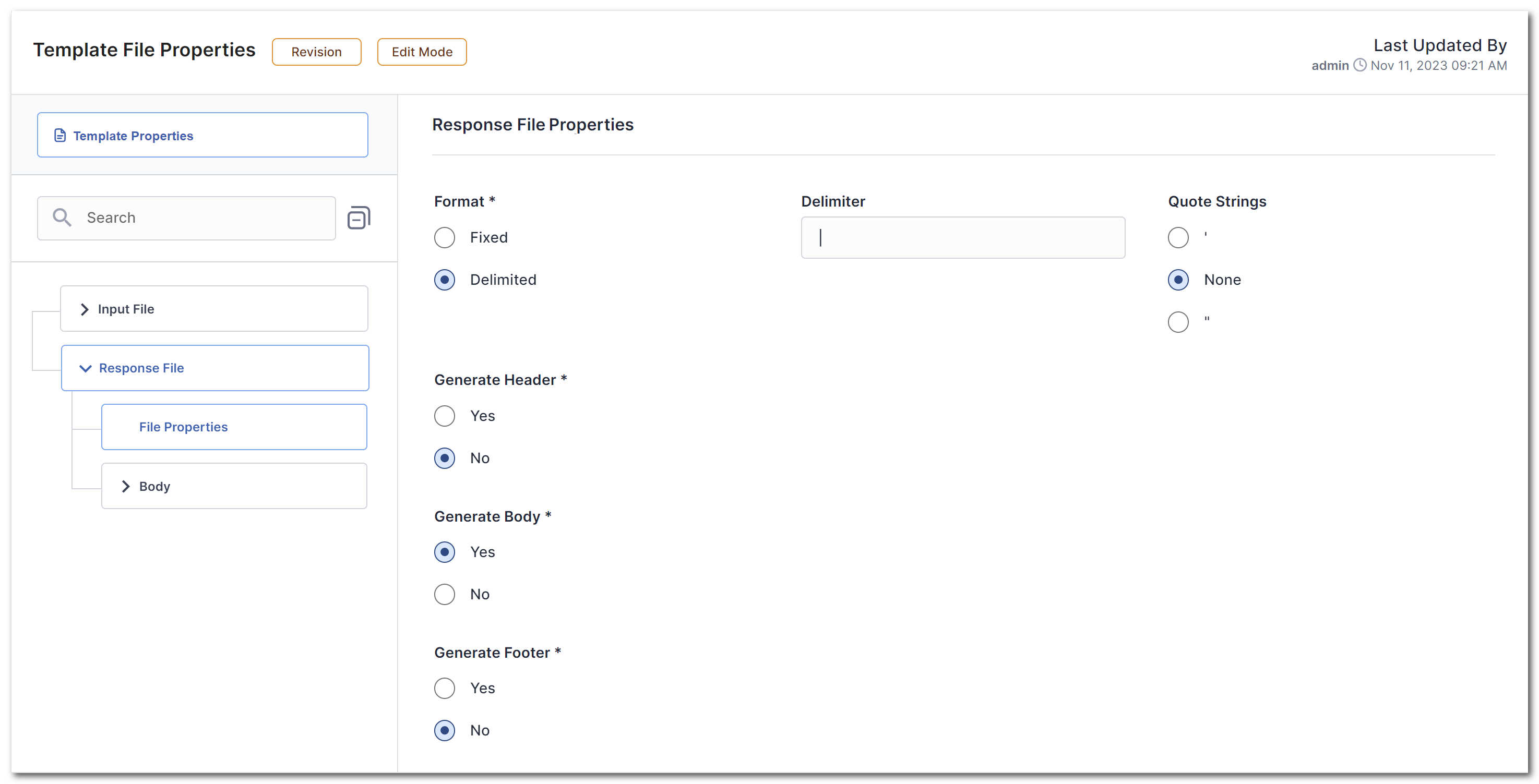 - Indicates whether the file has one or more body rows. If yes, the Body tab enables you to configure each column of the body rows.