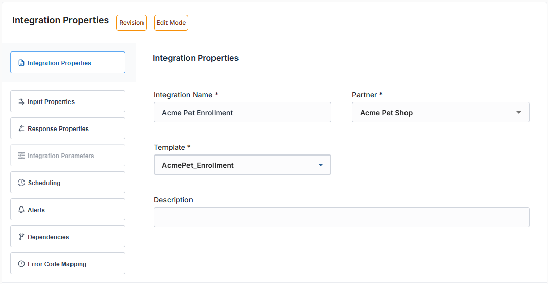Property Name Property Description Integration Name Type Acme Pet Enrollment.Partner Select Acme Pet Shop.Template Select Acme Pet Enrollment. -