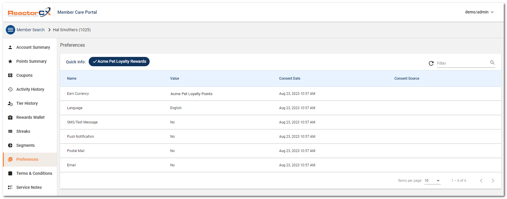 You can see a member's preferences in the read-only Preferences view. To add, delete, or change preferences, use the Member Management portal.