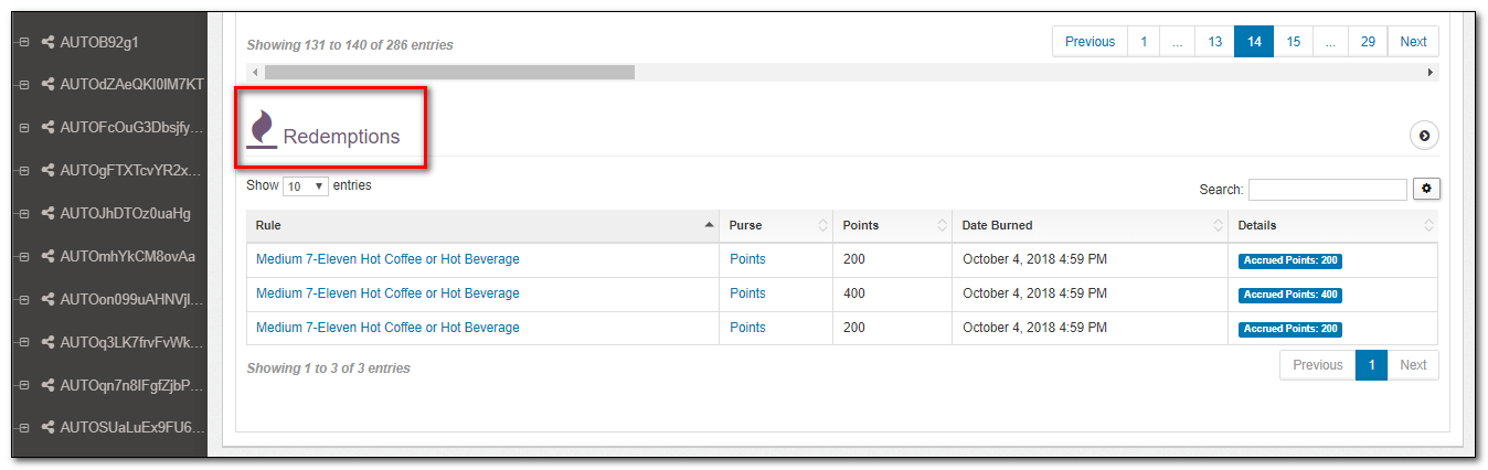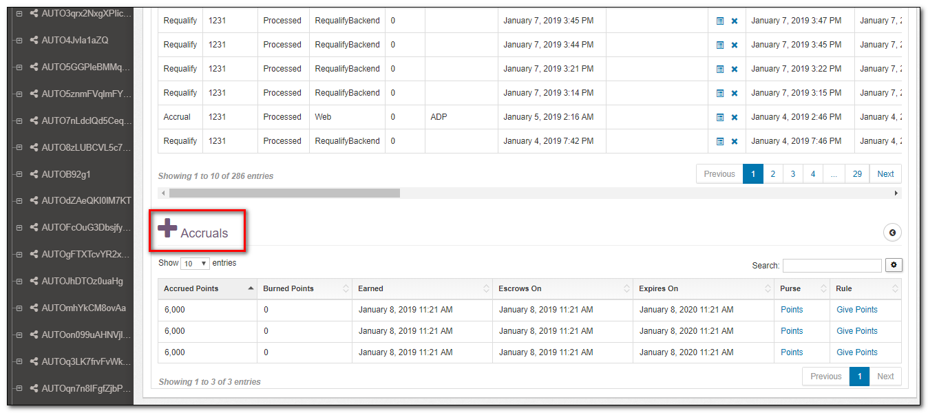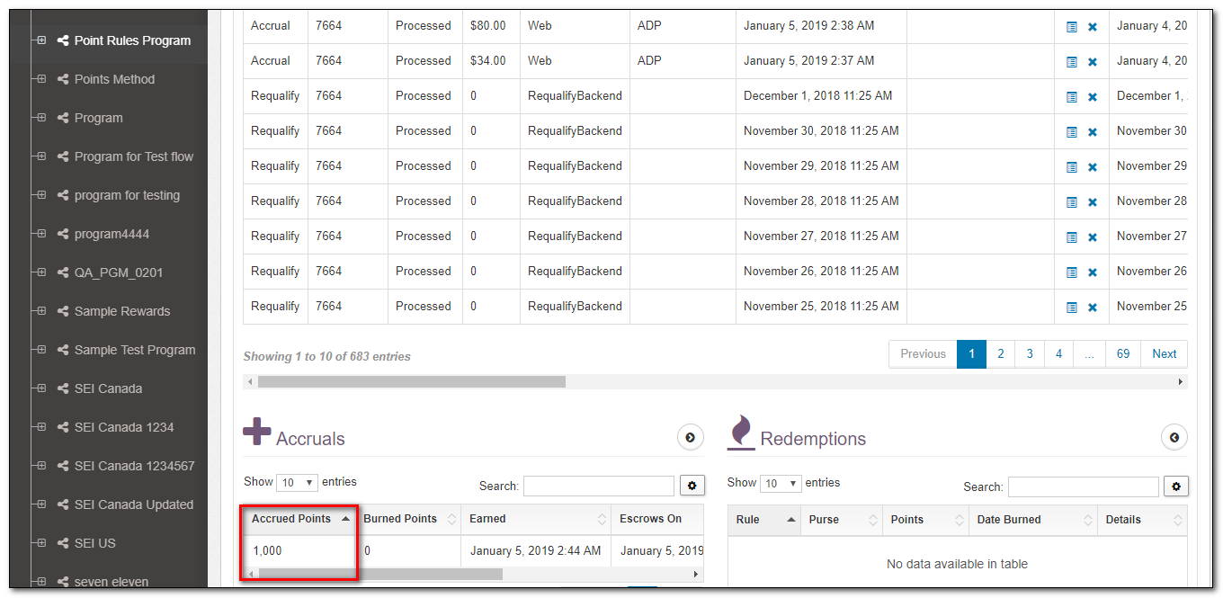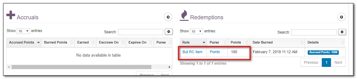 | Burned Points | If a redemption has happened and some or all of the points in this accrual have been redeemed, then you will see the number of points taken from this specific accrual in this field. |
