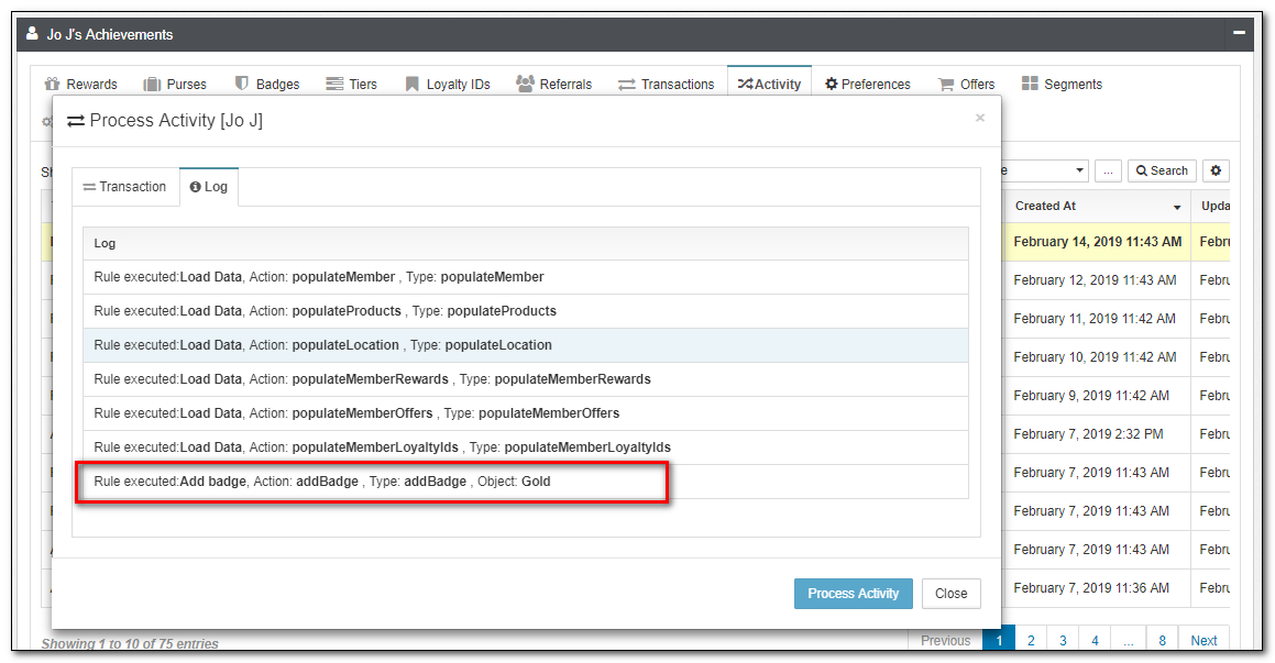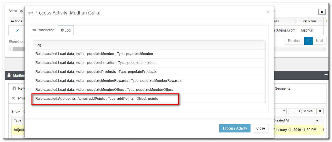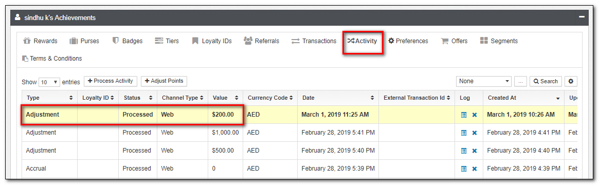 To understand what redemptions were triggered for a speicific activity, you can view the Redemptions Applet: