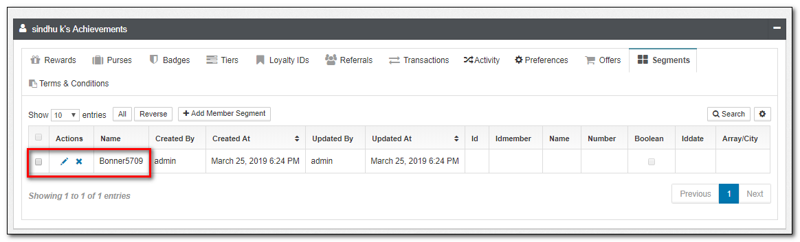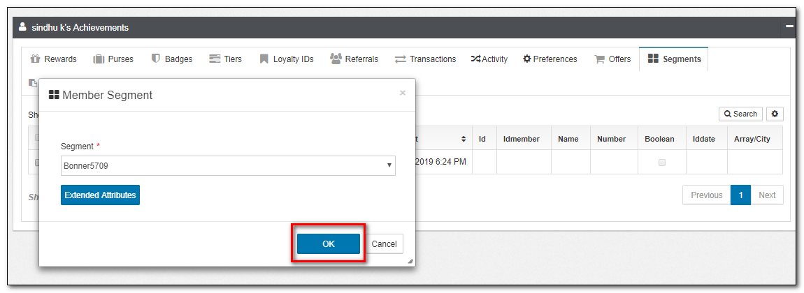 6.Click the Segments applet tab to check the Segments added to the member.