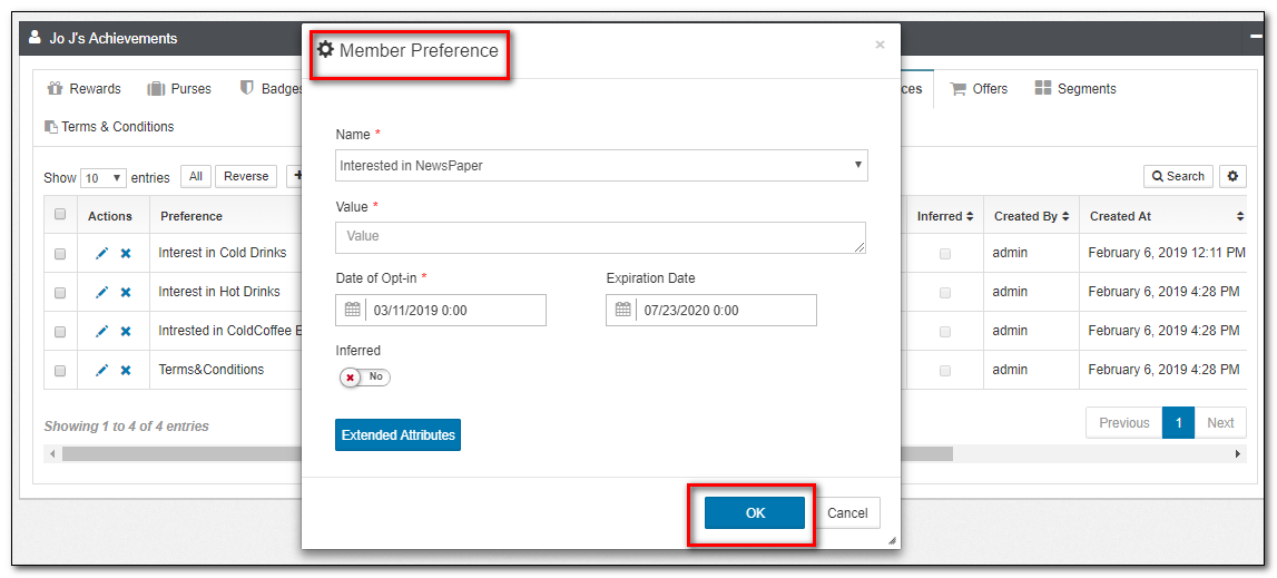 6.Click the Preferences applet tab to check the Preferences given to the member.