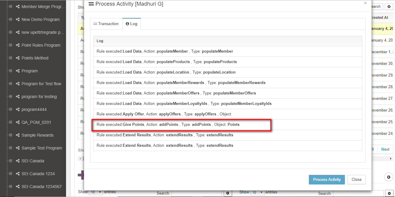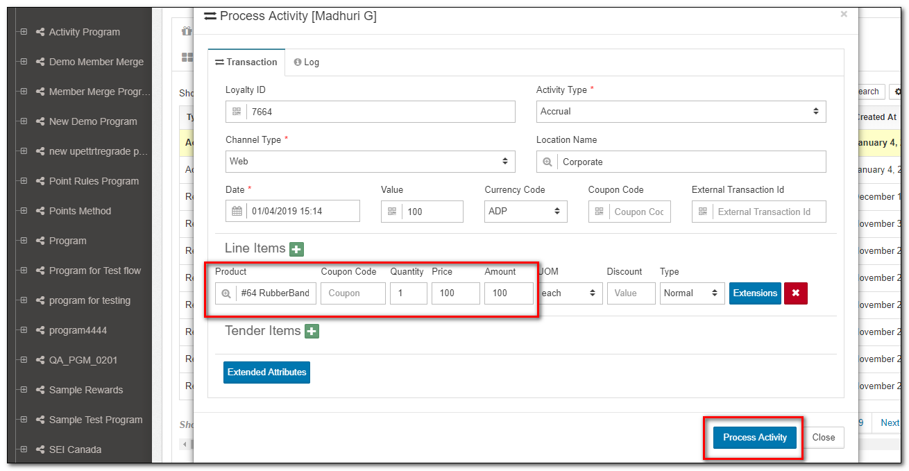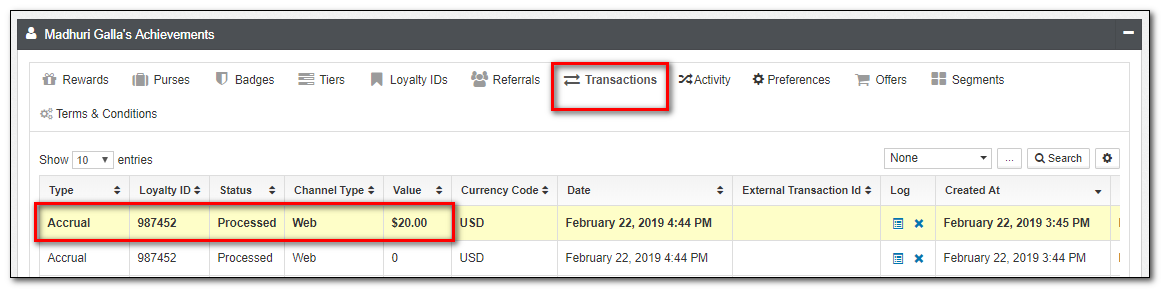 One of the most important aspects of viewing member details is to understand how transactions have resulted in earn/burn of rewards.