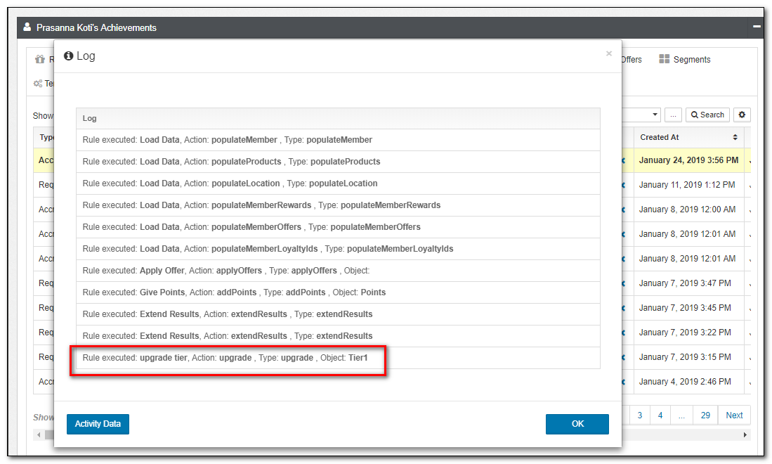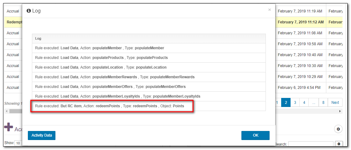 For each Activity, the Accruals Applet will show what promotions (rules) were triggered in the Loyalty Engine. For each such promotion, you will be able to see:
