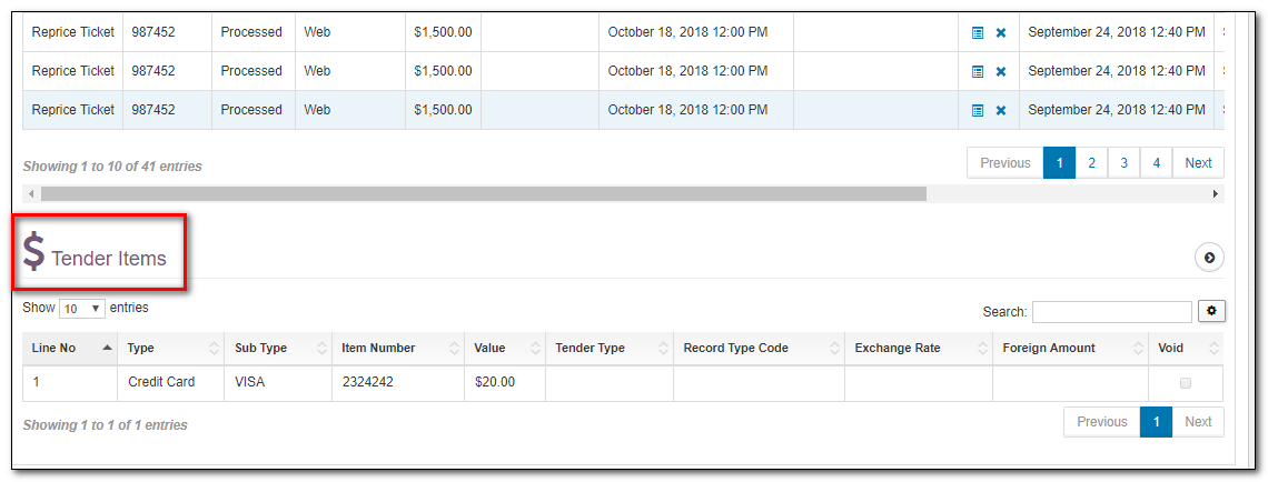 | Tender Items | Select the mode of payment and enter the value of the activity performed. |