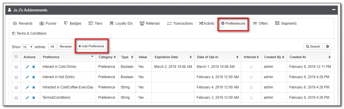 2.Click on Preferences applet tab in member Achievements tab then click on the Add Preference command button to add the particular preference for an individual.