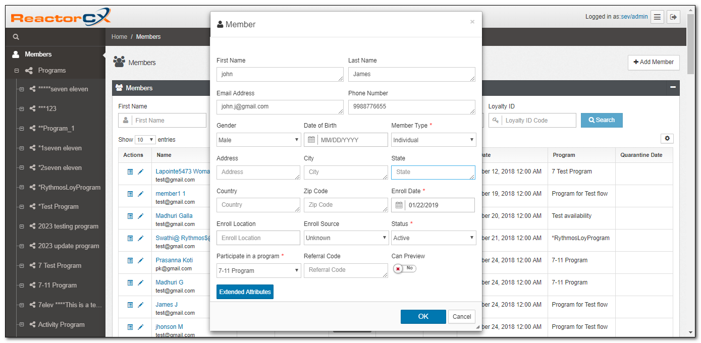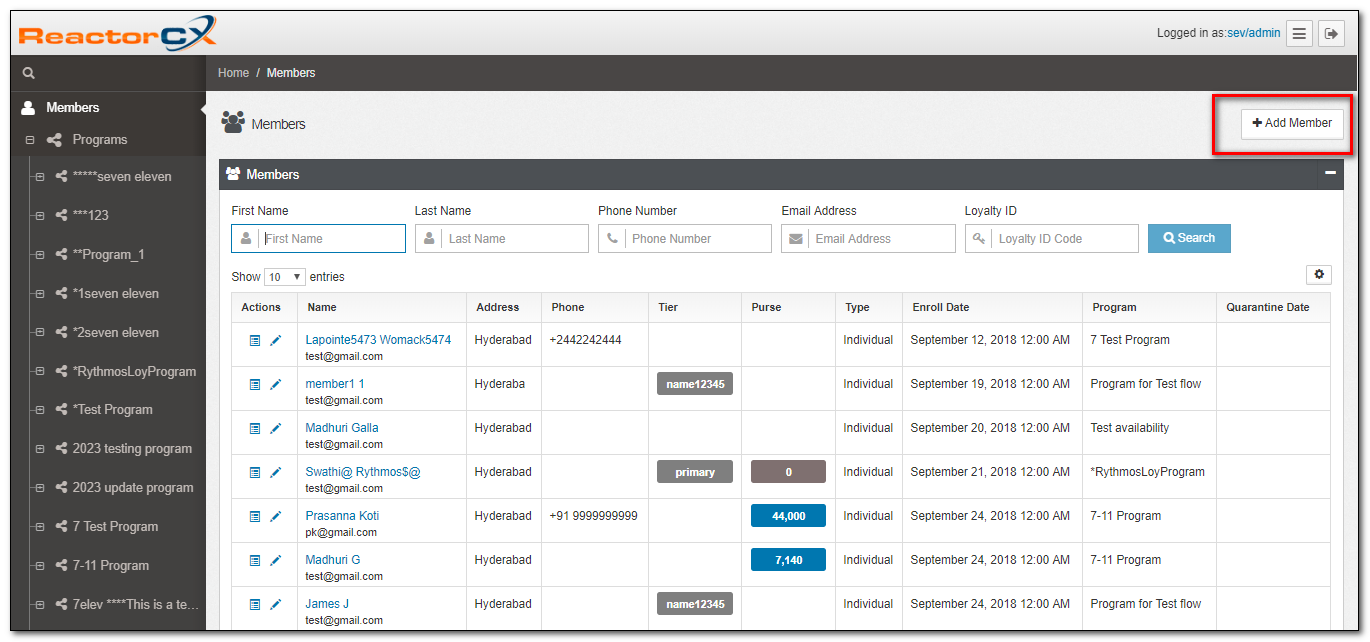 Typically, new members enroll in a program through POS, Mobile or Web channels. However, if these options are not available, new members can be added to ReactorCX through the Member Management Portal.