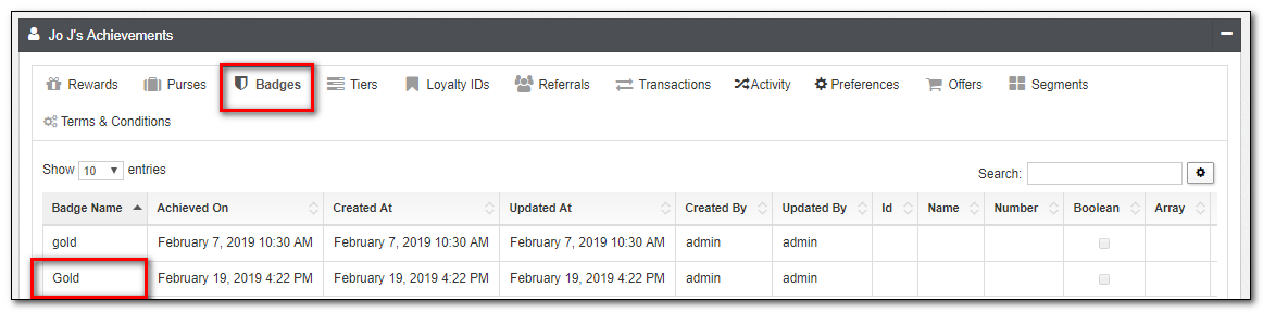 | Badges | This is a list of any badges earned through the program. Badges can be edited from this view. |