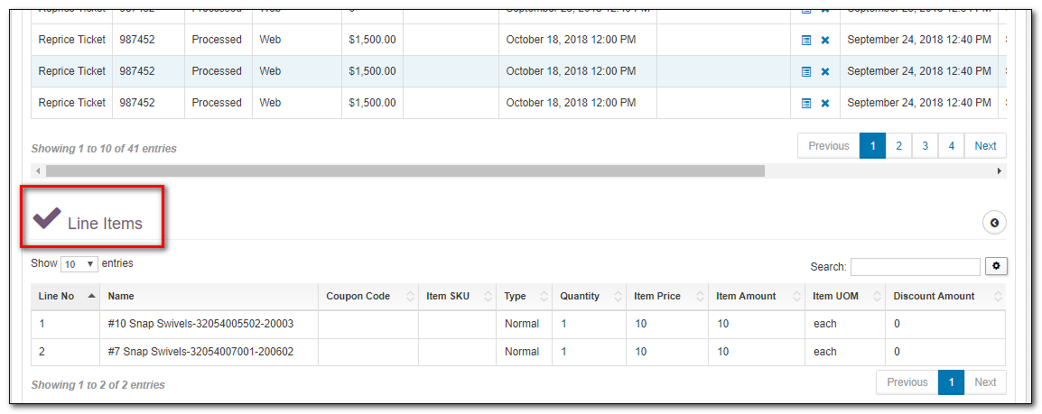 | Line Items | Your administrator may setup a special Product that is used to provide missing credit. Please ensure you have selected the correct product if this is the case. |