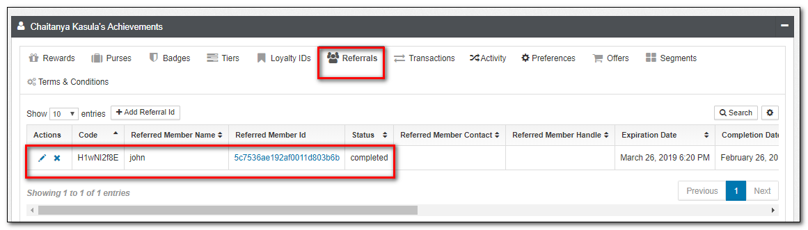6.Click on the Referrals applet tab of the Member, The status is now changed from Pending to Completed.