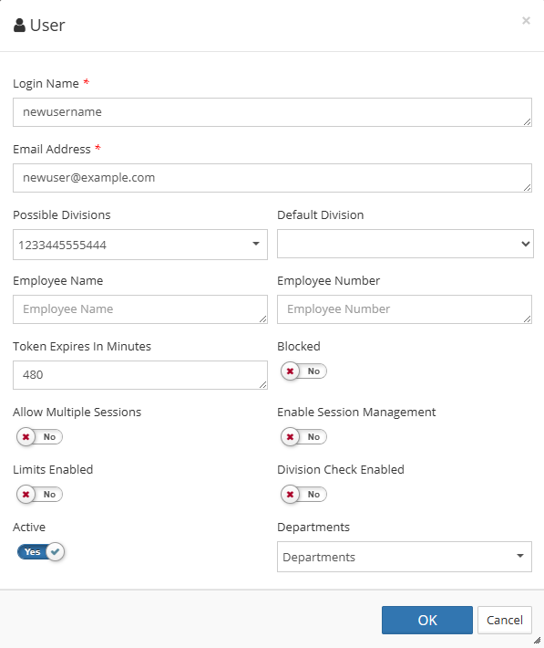 - Click + Add User. The User dialog box opens.